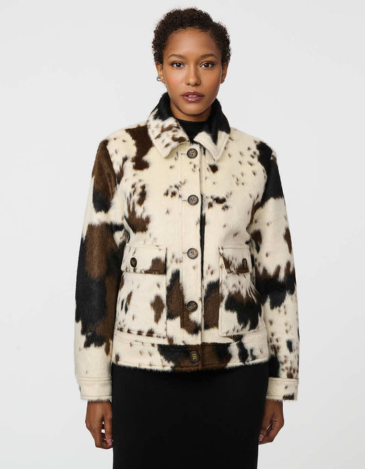 Cozy Dakota Cow Print Jacket with Soft Fleece Lining for Ultimate Comfort